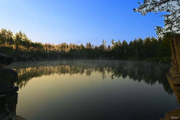 В августе на рассвете над водой туман. В сентябре он становится плотнее.
